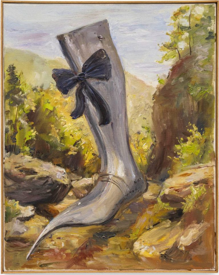 Schwebend erhebt sich ein eiserner Schnabellatsch mit schleifchenverzierter Beinröhre in majestätischer Vertikale über die sanft geschwungene Hügellandschaft des Département X. Scharf und geschwungen macht das Konstrukt keinen Anschein, in das felsige Terrain der Natur eintauchen zu wollen. Da fragt man sich: